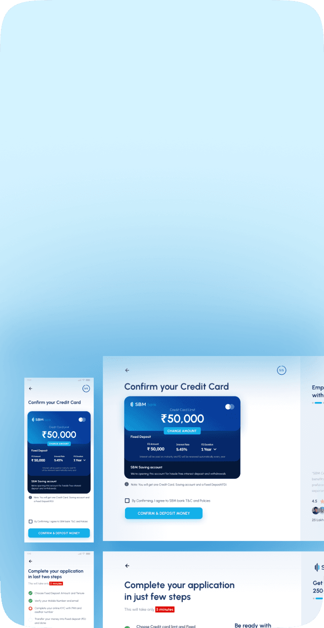 A responsive webpage for an international bank, allowing customers to obtain a credit card effortlessly by booking a fixed deposit (FD)